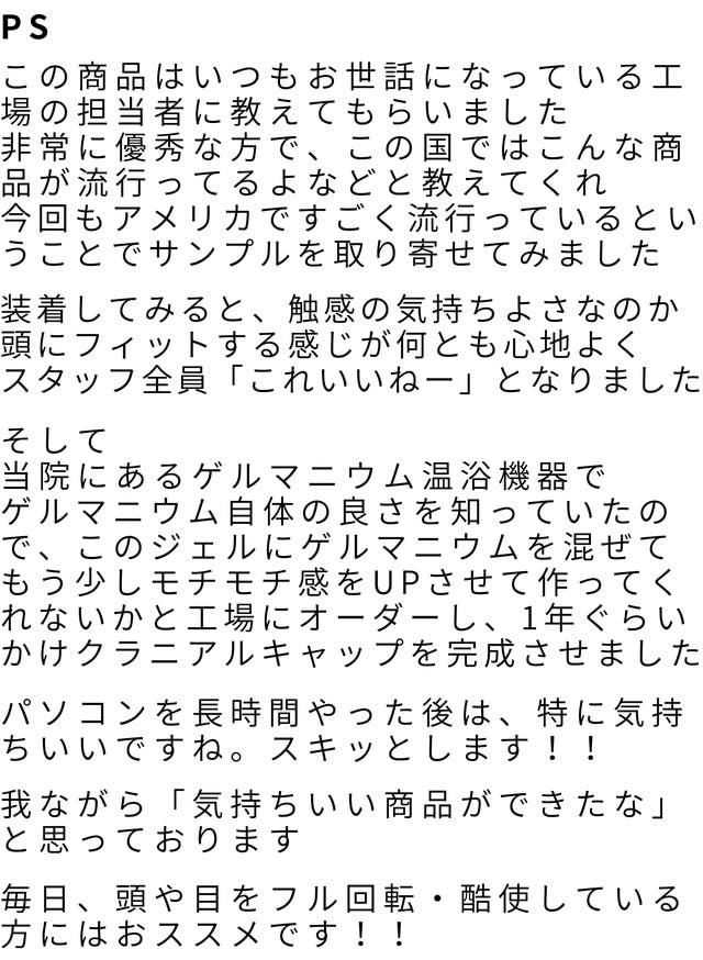 ①『高品質ゲルマニウム』を独自配合した特殊なジェルを開発しヘッドキャップを作成